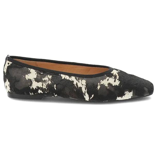 Baleriny damskie S.Barski, cholewka ze skóry naturalnej typu hair-on z efektownym wzorem zwierzęcym wsuwany fason bez zapięcia, czarne, CR61-3093