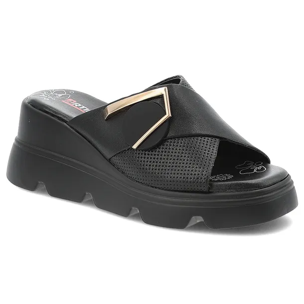 Czarne Klapki Artiker Modne Obuwie Damskie Na Koturnie